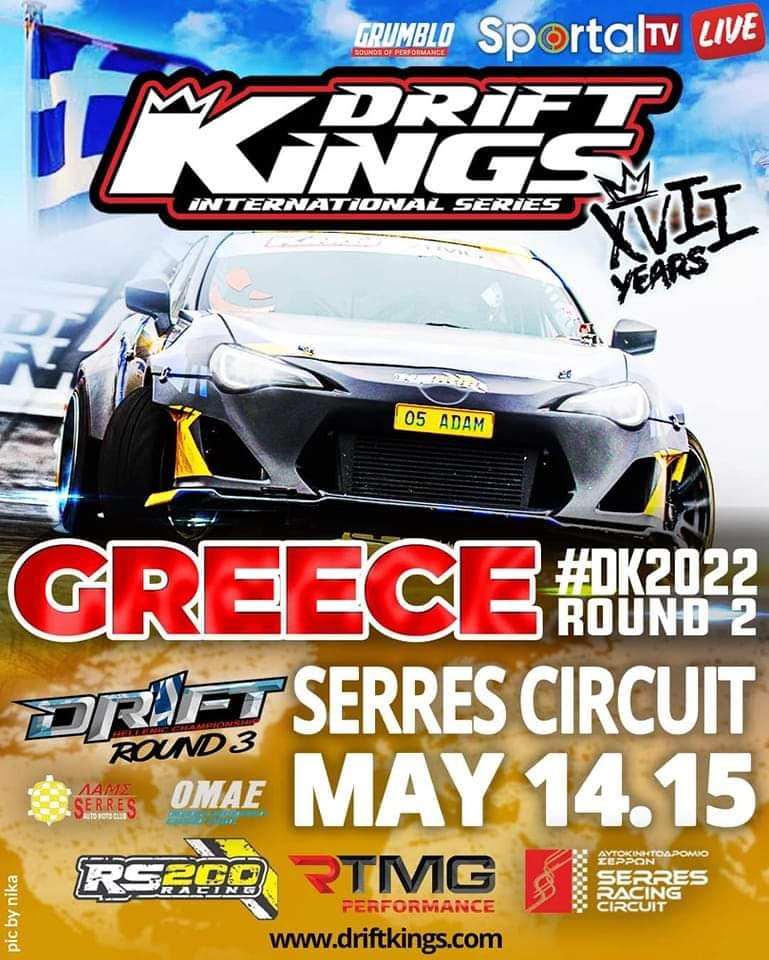 Από την Παρασκευή 13 Μαΐου και έως την Κυριακή 15 Μαΐου, η Λ.Α.Μ.Σ. θα διοργανώσει τον αγώνα του Παγκόσμιου πρωταθλήματος Drift Kings στο Αυτοκινητοδρόμιο Σερρών.
